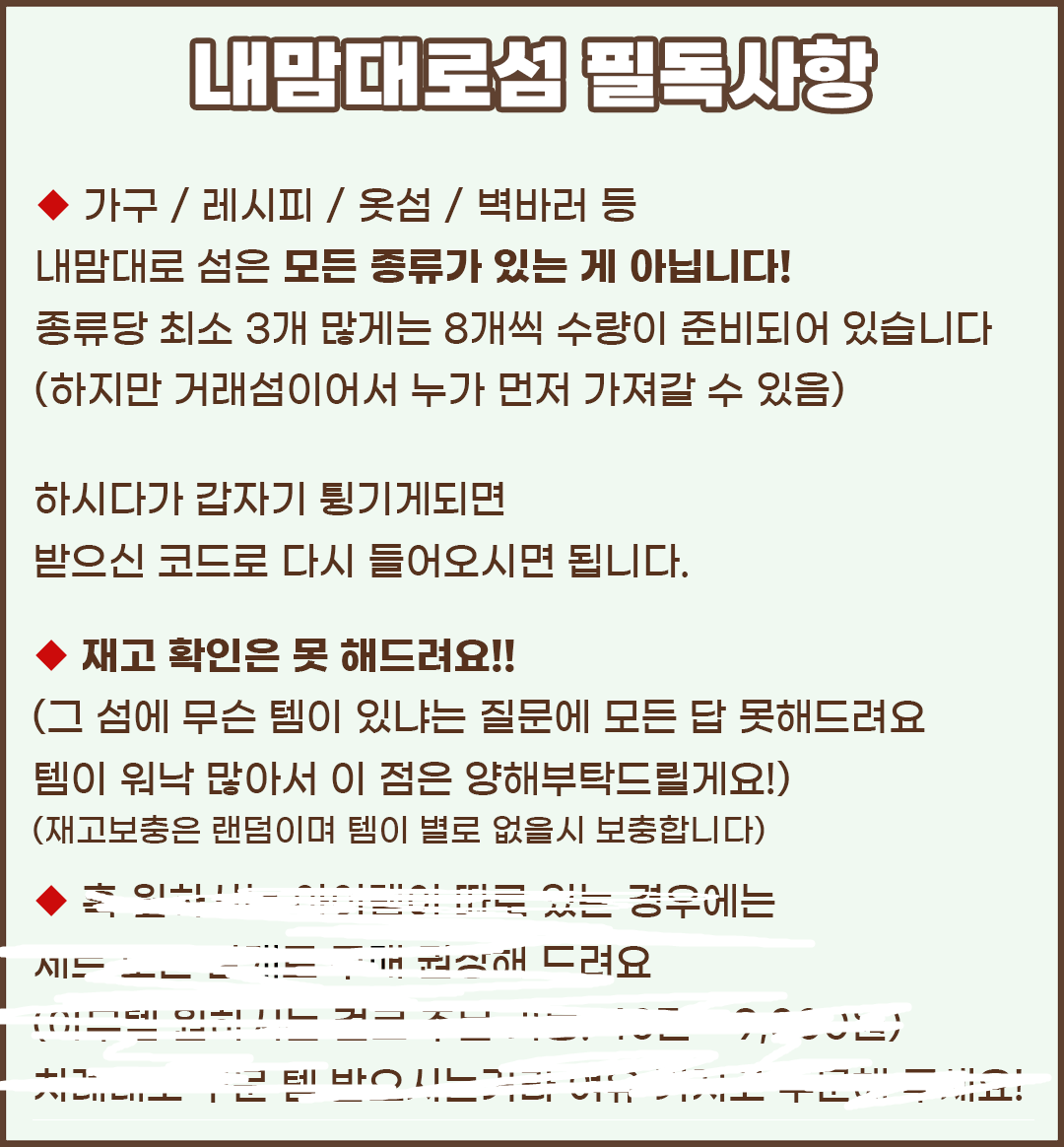 거래섬이니만큼 다른 사람도 접속할 수 있습니다