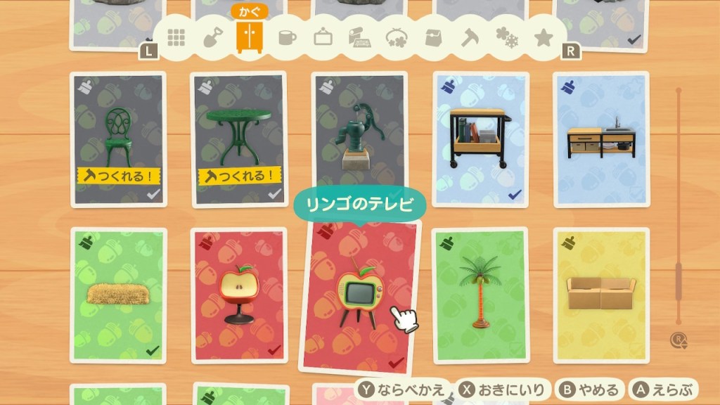 아이언우드 왜건 1.0x 목재 6, 철광석 4 주민(느끼함) 리폼 가능 침대 2.0 0 0 () 찬장 수납장 (성숙함) 키친 3 수납장 도마 너굴 상점 DIY 테이블 작은 DIY 작업대 (무뚝뚝) 가든 벤치 황금 관 금광석 8 벤치 5 변기 건초 침대 잡초 0 상점 00벨 오렌지 사이드 테이블 오렌지 (먹보) 복숭아 체어 복숭아 (친절함) 배 옷장 배 (운동광) 배 침대 배 70 사과 TV 사과 (단순활발) 사과 체어 사과 야자나무 램프 .. 야자열매 점토 벌통 벌집 작은 무인 도서관 책 박스 의자 종이 상자 박스 소파 종이 상자 (돌) 박스 테이블 종이 상자 박스 침대 종이 상자 이삿짐 박스 S 종이 상자 이삿짐 박스 M 종이 상자 이삿짐 박스 L 종이 상자 방석 더미 방석 드럼통 욕조 드럼통 모닥불 특대 곰인형 .0.0 큰 곰인형 중간 곰인형 작은 곰인형 스트리트 피아노 업라이트 피아노 그림 그리기 세트 히어로 로봇 .0.0 로켓 골든 아머 녹슨 부품 0 90 포트에서 마일로 교환 초승달 체어 별의 조각 커다란 부옥 달 부옥 운석 부옥 우주 비행사 부옥 로켓 0 부옥 인공위성 부옥 우주왕복선 부옥 유인 우주선 0 부옥 달착륙선 부옥 월면이동차 타이어 부옥 하늘 나는 원반 부옥 양자리 목마 양자리 조각 부옥 황소자리 욕조 황소자리 조각 부옥 쌍둥이자리 옷장 쌍둥이자리 조각 부옥 게자리 테이블 게자리 조각 부옥 처녀자리 하프 처녀자리 조각 부옥 염소자리 모형 염소자리 조각 부옥 물병자리 항아리 물병자리 조각 부옥 물고기자리 램프 물고기자리 조각 부옥 대나무 스툴 대나무 토막 대나무 벤치 대나무 토막 대나무 파티션 0. 대나무 토막 대나무 쉘프 대나무 토막 노 대나무 토막 점토 단단한 상점 대나무 분수 대나무 토막 대나무 바구니 대나무 토막 대나무 플로어 스탠드 대나무 토막 대나무 스피커 대나무 토막 대나무 주차 멈춤 턱 0. 대나무 토막 대나무 깜짝 상자 봄의 대나무 풍선 계절 레시피 초록 낙엽 .. 의 대나무 흐르는 국수 장치 .0 의 대나무 벚나무 꽃잎 더미 벚꽃잎 벚나무 가지 .. 벚꽃잎 나뭇가지 점토 피크닉 세트 .. 벚꽃잎 월 일 벚꽃 (여울) 벚꽃 초롱 벚꽃잎 단단한 벚꽃 물받이 벚꽃잎 조개 스툴 자패 조개 분수 .. 거거 조개 테이블 연잎성게 점토 조개 침대 거거 점토 조개 파티션 뮤렉스조개 소라 고둥 조개 아치 .0 방석고둥 뮤렉스조개 연잎성게 산호 거거 자패 머메이드 테이블 진주 연잎성게 해탈한 머메이드 쉘프 진주 거거 산호 해탈한 머메이드 화장대 진주 거거 산호 해탈한 머메이드 파티션 진주 거거 연잎성게 해탈한 머메이드 램프 진주 소라고둥 산호 해탈한 머메이드 침대 진주 거거 연잎성게 해탈한 머메이드 옷장 진주 거거 산호 연잎성게 해탈한 머메이드 소파 진주 연잎성게 해탈한 머메이드 수납장 진주 거거 산호 해탈한 머메이드 체어 진주 거거 연잎성게 해탈한 버섯 램프 가는 버섯 점토 (가을) 버섯 스툴 둥근 버섯 버섯 원목 가는 버섯 통나무 스툴 버섯 테이블 넓은 버섯 버섯 파라솔 넓은 버섯 버섯 파티션 가는 버섯 노란 낙엽 .. 도토리 빨간 낙엽 .. 단풍잎 낙엽 .. 솔방울 낙엽 모닥불 솔방울 나뭇가지 낙엽 스툴 단풍잎 나무 열매 트리 솔방울 도토리 단풍잎 나뭇가지 점토 나무열매 아치 .0 솔방울 도토리 단풍잎 나뭇가지 귀여운 크리스마스 트리 빨간 오너먼트 파란 오너먼트 금 오너먼트 (겨울) 큰 크리스마스 트리 점토 선물 일루미네이션 눈꽃 일루미네이션 9 순록 일루미네이션 트리 일루미네이션 단 눈사람 단단한 목재 부드러운 목재 봄의 대나무 점토 눈의 결정 나뭇가지 완벽한 눈사람 만들기 얼음 기둥 얼음 아치 .0 얼음 조각상 .. 얼음 침대 얼음 카운터 얼음 테이블 얼음 트리 얼음 파티션 0. 코스모스 샤워기 핑크색 코스모스 튤립 깜짝 상자 빨간 튤립 부드러운 장미 침대 빨간 장미 팬지 테이블 노란 팬지 단단한 국화 스툴 노란 국화 백합 레코드 플레이어 2.1 안내소 (마을사무소) 비행장 3 가게 (너굴상점) 4 박물관 5 옷가게 6 여욱 마켓 7 캠핑장 8 카페 (비둘기 둥지) 9 해피홈 아카데미 0 리사이클 샵 원예점 운세 전문점 여욱 뽑기상점 하얀 백합 플라워 스탠드 빨간 장미 핑크색 장미 오렌지색 장미 하얀 백합 노란 백합 보라색 아네모네 이스터 스툴 물고기 달걀 테이블 땅 달걀 옷장 바위 달걀 화장대 나뭇잎 달걀 침대 땅 달걀 바위 달걀 나뭇잎 달걀 나무 달걀 하늘을 나는 달걀 물고기 달걀 월 일 (토빗) A 땅 달걀 나뭇잎 달걀 하늘을 나는 달걀 B 바위 달걀 나무 달걀 물고기 달걀 아치 .0 땅 달걀 바위 달걀 나뭇잎 달걀 나무 달걀 하늘을 나는 달걀 물고기 달걀 할로윈 체어 주황색 호박 할로윈 테이블 주황색 호박 엉성한 낚싯대 나뭇가지 x5 40벨 1 DIY 워크숍 퀘스트 도중 습득 처음부터 상점에서 구입 가능 재료 철광석 구입 불가 3 마일리지 교환으로 "언제나 쓸 수 있는 도구 레시피 구입 리폼 6 ○○○ [B] 제작 불가 2 상점 증축 후 금 금광석 9 물고기 도감 완성 잠자리채 워크숍 완료 후 습득 처음부터 상점에서 철광석 마일리지 교환으로 구입 [B] 불가 후 금 곤충 도감 도끼 돌 에게 생물 종류 기증 이후 상점에서 (일차 이후로는 생물 기증이 안되 가 지급되지 않는 문제가 발생하는 경우가 있음) 돌 목재 마일리지